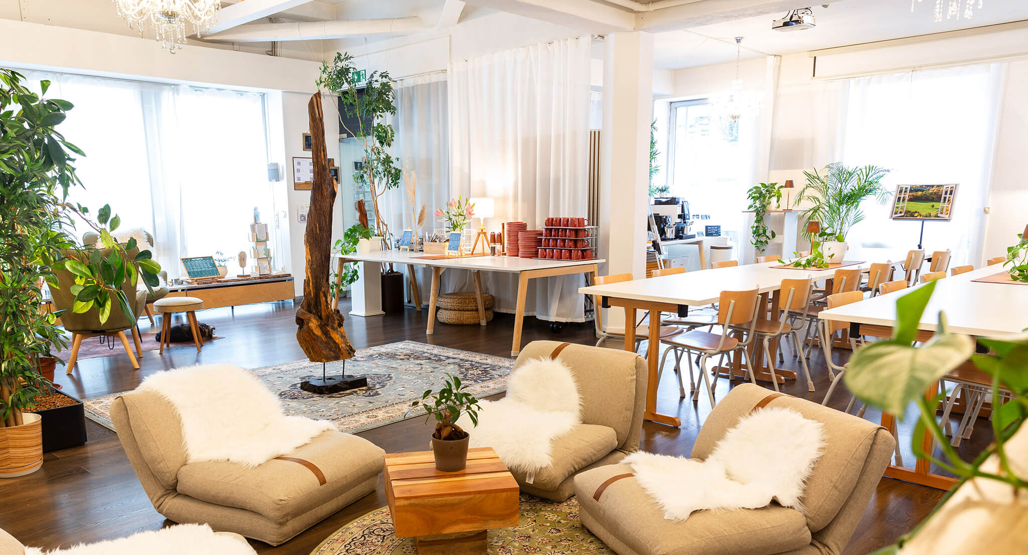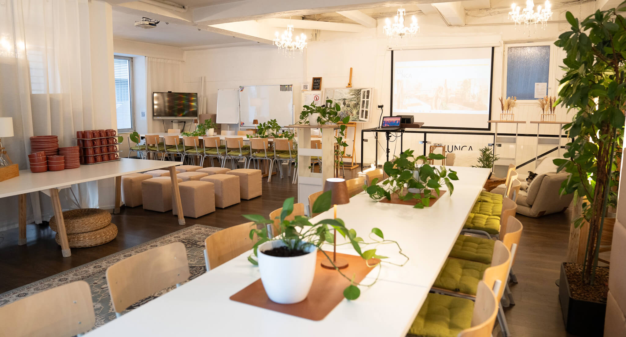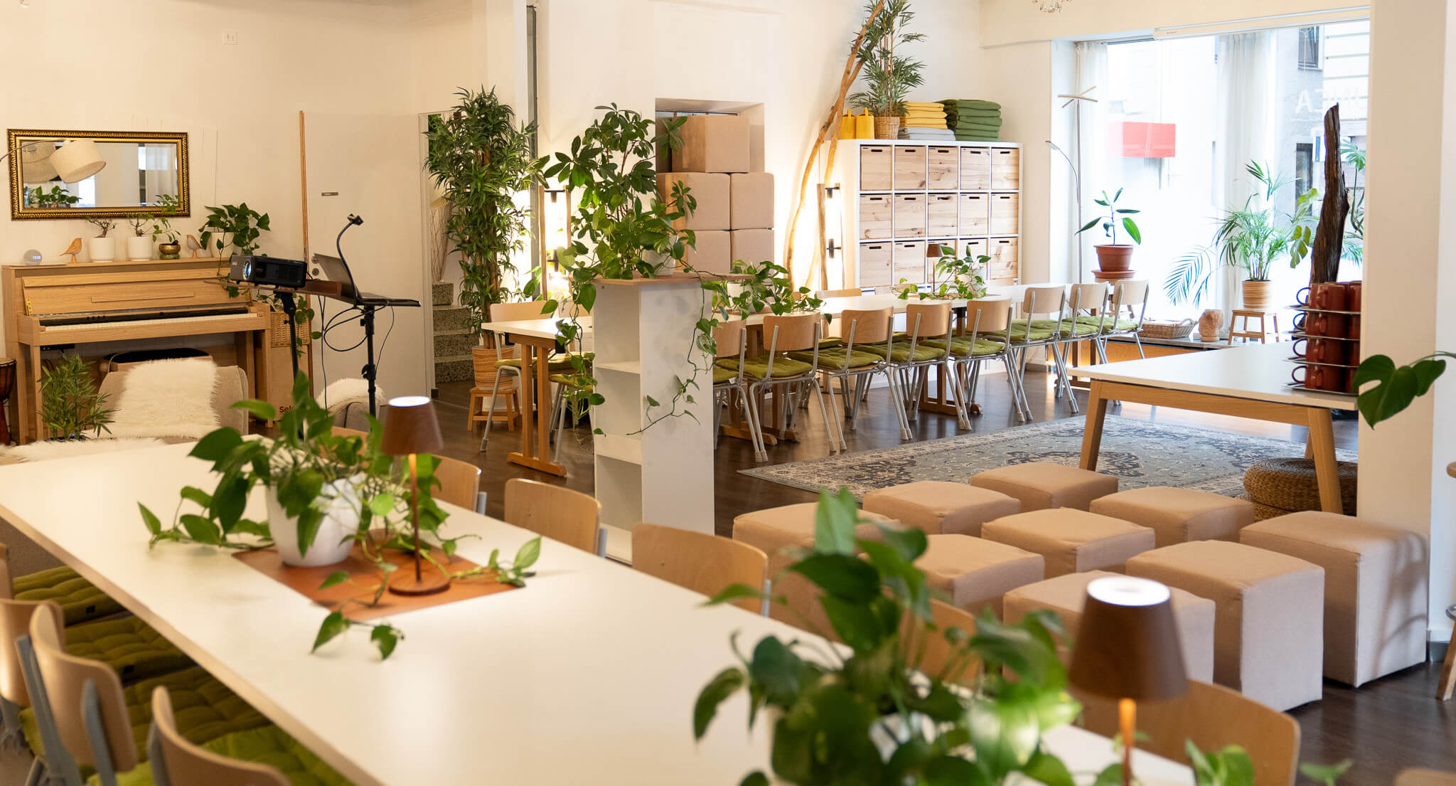 Auf zwei Etagen und insgesamt 220 Quadratmetern bietet unser Studio im Stuttgarter Westen/Mitte viel Platz für kreative und professionelle Veranstaltungen. Ob Teambuildings, Firmen-Events, Kurse, Seminare oder Vorträge – die flexible Raumgestaltung ermöglicht ein individuelles Setting für jede Gelegenheit. Das Studio eignet sich gleichermaßen für kleinere Gruppen mit ca. 10 Personen wie auch für größere Veranstaltungen mit bis zu 65 Teilnehmenden in lockerem Rahmen. Bei jeder Buchung steht das gesamte Studio auf zwei Stockwerken exklusiv zur Verfügung. Lediglich der separate Meetingraum, der an einigen Tagen von unserer Mitarbeiterin genutzt wird, kann auf Wunsch zusätzlich gebucht werden.