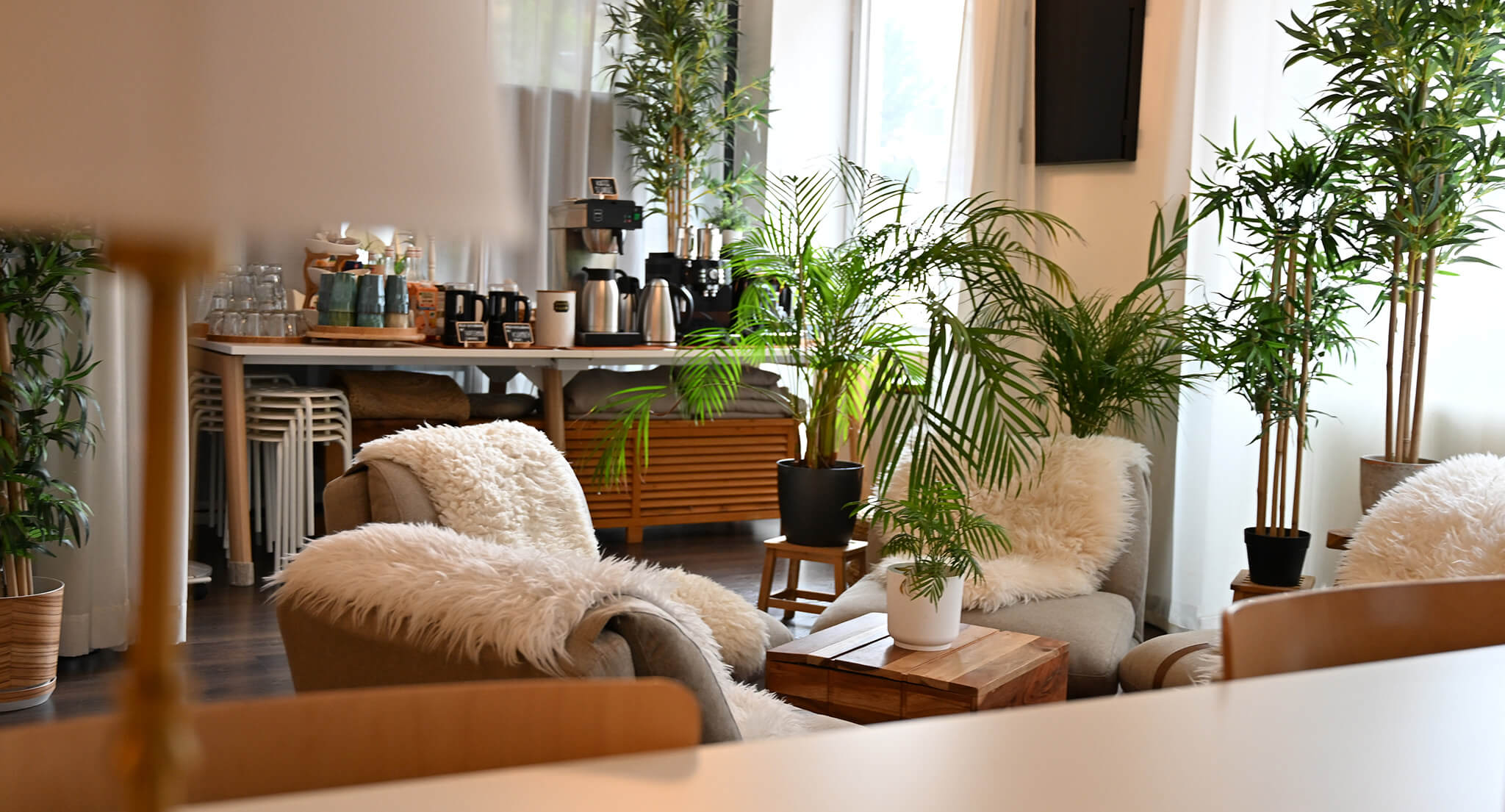 In unserem Studio stehen Ihnen auf 220 Quadratmeter im EG und UG mehrere Räume z.B. für Gruppenarbeiten, Pausen, Parallel-Coachings etc. zur Verfügung. Für Gruppenarbeiten kann in zwei separaten Lounges und auch in der Küche (am Tisch) gearbeitet werden. Alle Möbel sind flexibel stellbar. Der Meetingraum ist auf Anfrage hinzubuchbar.