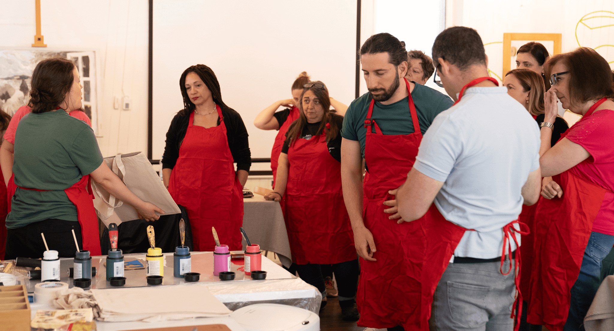 Ein Programmpunkt war ein künstlerisches Teambuilding, das wir gemeinsam mit unserem Partner Kreativkreisel individuell entwickelt haben. Ein solcher Kreativ-Workshop sorgt nicht nur für jede Menge Spaß, sondern eröffnet auch neue Blickwinkel im Team. Er hilft, sich gegenseitig besser kennenzulernen, die individuellen Stärken sichtbar zu machen und durch einen Perspektivwechsel wertzuschätzen. An diesem Tag stand im Mittelpunkt, welche Rollen und Fähigkeiten jede einzelne Person ins Team einbringt – und wie diese für alle erlebbar werden können.